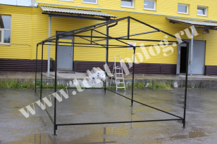 Каркас Палатки изготовлен из стальной трубы 30х30х2 мм, имеет нижнее основание и покрыт порошковой краской. Нижнее основание и верхняя обвязка служат для повышения прочности конструкции.