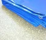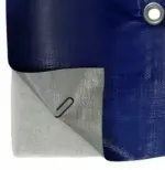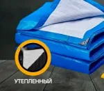 Утепленный тент тарпаулин 90 гр/м2 состоит из прочного трехслойного материала. Внешние слои состоят из пенополиэтилена. Материал переплетен специальными плетением, а также покрыт специальной влагоотталкивающей пропиткой. По периметру тента вшиты специальные алюминиевые люверсы. С внутренней стороны тент утеплен изолоном, который в свою очередь защищает от повышенного уровня влаги.